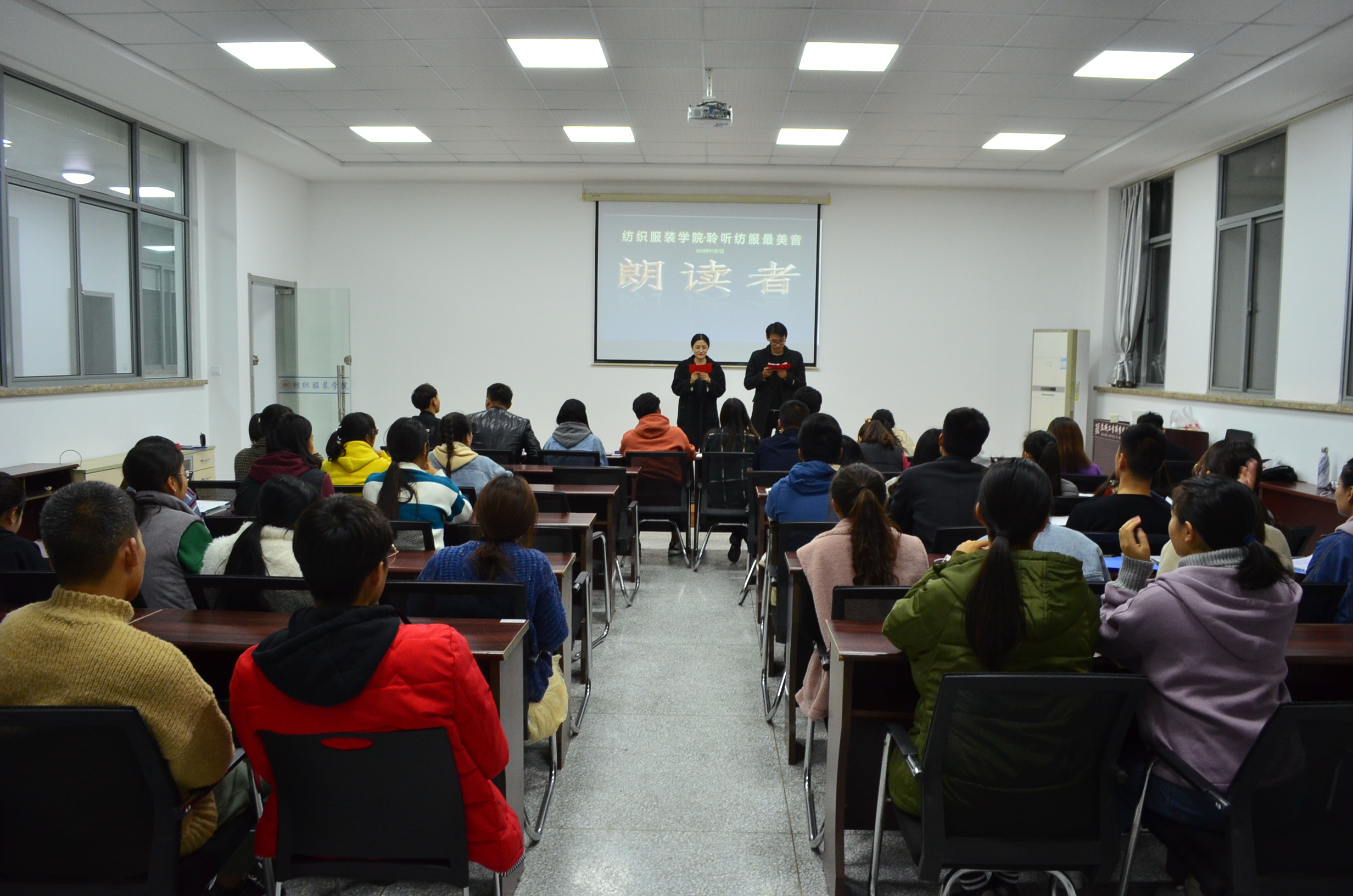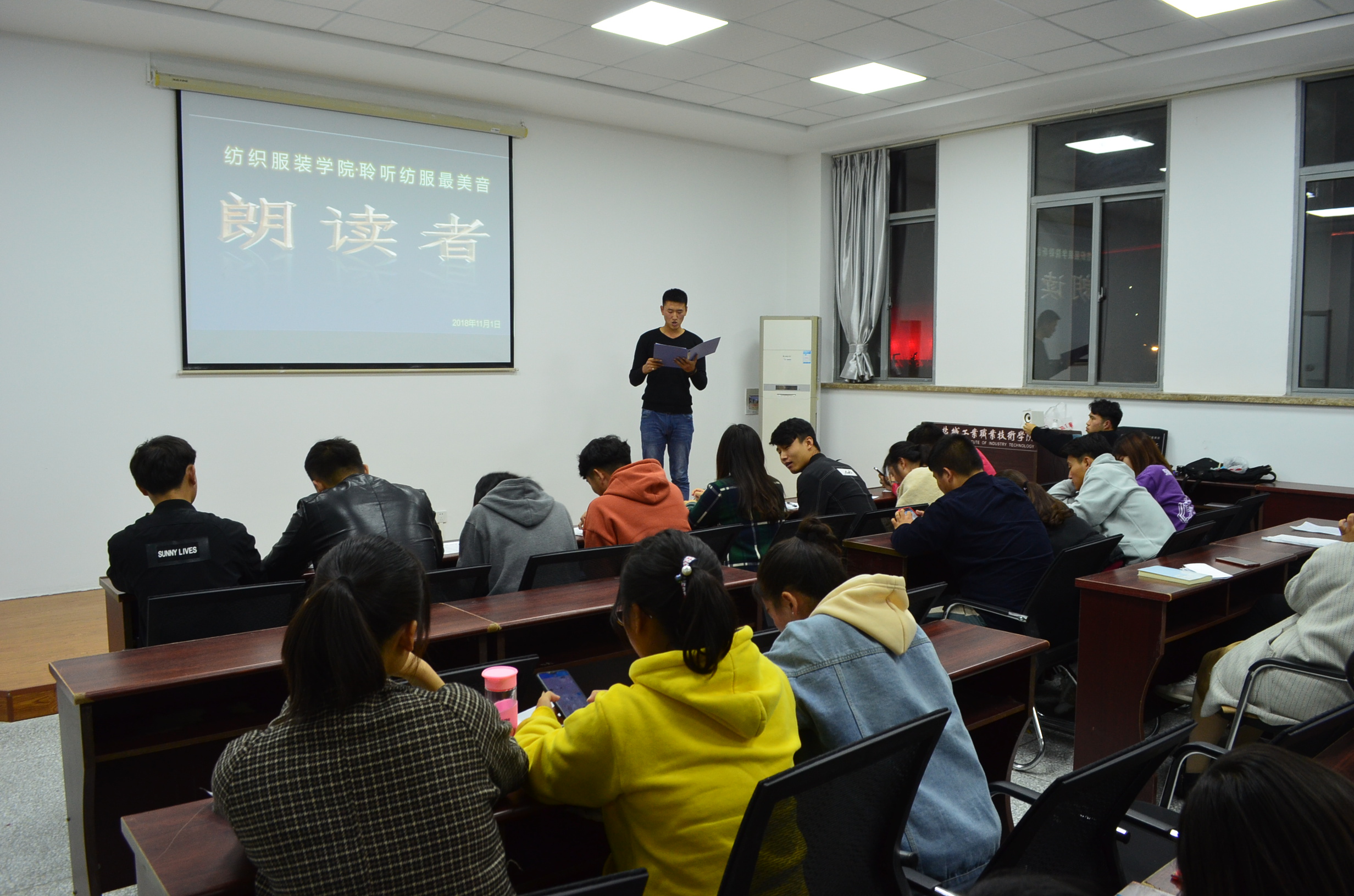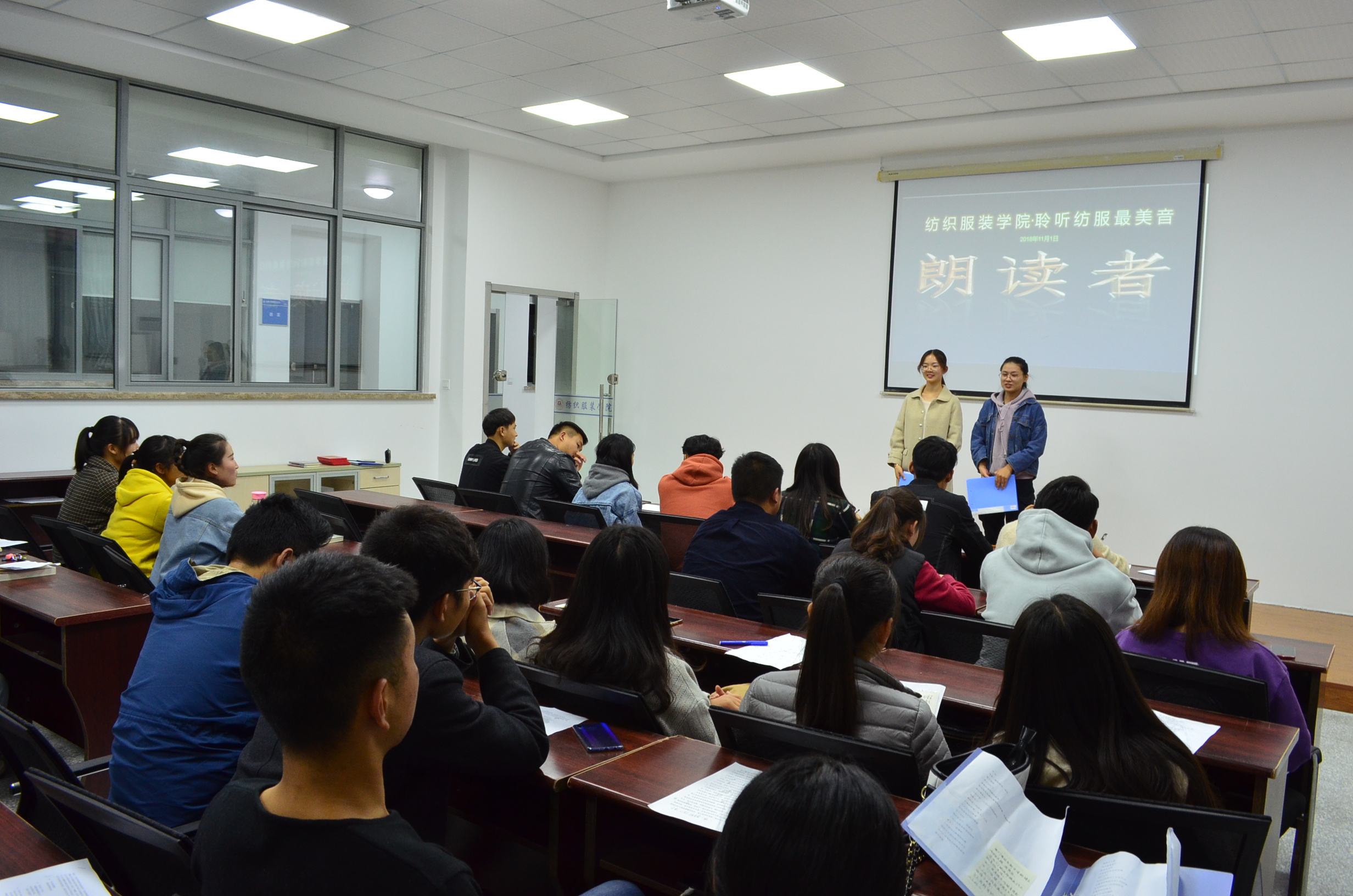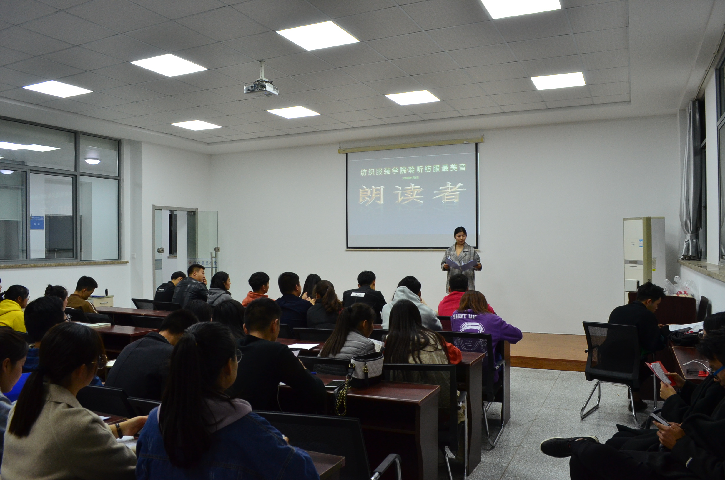 11月1日,由纺织服装学院团总支主办的“朗读者·聆听纺服最美声音”朗诵比赛在纺工楼309会议室成功落幕。学院辅导员陈玲敏、学生会主席团以及各部门部长担任比赛评委。