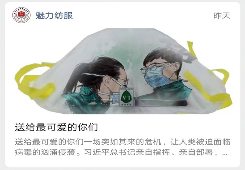 庚子鼠年,楚地大疫,万白衣,倾其力,遵党召,众齐心,春已来,战必胜。举国战疫期间,纺织服装学院党总支号召全体学生干部尽己之力,砌好本院防护墙,共筑学校安全网。