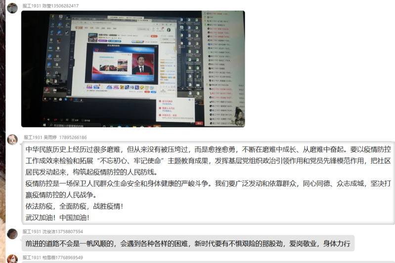 全院近20个班级严格按照学院党总支的要求,由各班班干在班级QQ群内进行屏幕分享,组织带领全体同学一起学习。在这个特殊时刻,从医务工作者到人民子弟兵,从公安民警到基层干部,从志愿者到快递小哥……,14亿中国人万众一心、众志成城,创造了一系列的战“疫”中国速度、中国奇迹。学生们紧跟专家的学习步调,从党中央关于疫情防控的决策部署的解读,到中国抗疫过程中彰显的中国共产党领导和中国特色社会主义制度的显著优势的分析,以及抗疫一线的感人故事的讲述,既有深度、又有高度,还饱含温度。
