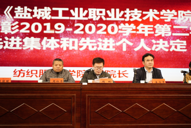 11月4日,纺织服装学院在大学生活动中心召开2019-2020学年第二学期学生工作总结表彰大会。纺织服装学院院长姜为青、党总支副书记秦晓、副院长周彬、办公室主任周红涛、教学主任赵菊梅、学工主任陈燕参加会议,大会由陈佳丽主持。