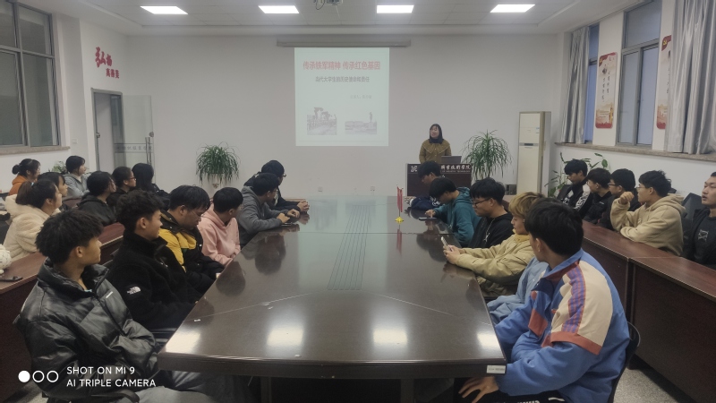 根据学校《关于对深人开展党史、新中国史、改革开放史、社会主义发展史宣传教育进行再部署的通知》的文件精神,纺织服装学院团总支书记陈玲敏于11月29日在纺服组团309会议室为2020级学生代表上了一堂题为“传承铁军精神 传承红色基因——当代大学生的历史使命和责任”的党课。