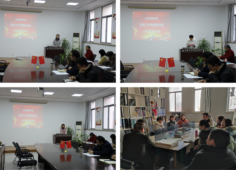 12月29日下午,纺织服装学院在纺服组团309会议室召开2022年招生工作专题研讨会。纺织服装学院院长姜为青,副院长周彬及全体教职工参加会议。会议由姜为青主持。