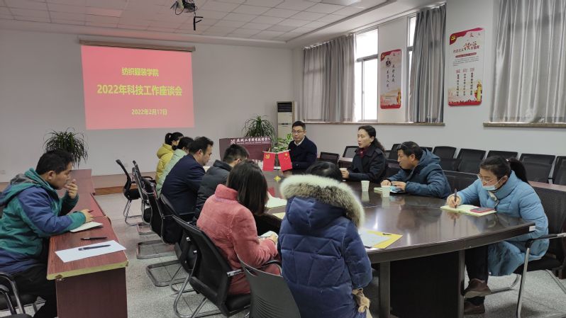 孙卫芳指出,高水平院校建设对科技创新工作提出了更高的要求,纺服学院要对学校和本学院的“十四五”科研发展规划进行科学分析和系统梳理,制定切实可行的年度科研目标:一是学院要加强机制创新和科研团队建设,营造浓厚科研氛围,提高科技创新能力和水平,争取在重大科研项目和标志性科研成果方面取得重要突破;二是学院科研管理队伍要加强业务学习,同时要增强为一线教师服务的意识,主动为老师们有计划、有针对性地组织联系科研项目、合作企业,服务科研全过程;三是要充分发挥人才优势,将人才作为第一资源,强化对年青教师的培养力度,创造条件支持年轻教师出去攻读博士学位,为学校科技创新工作保驾护航。