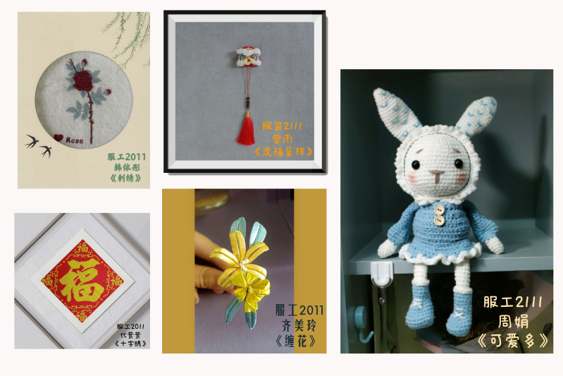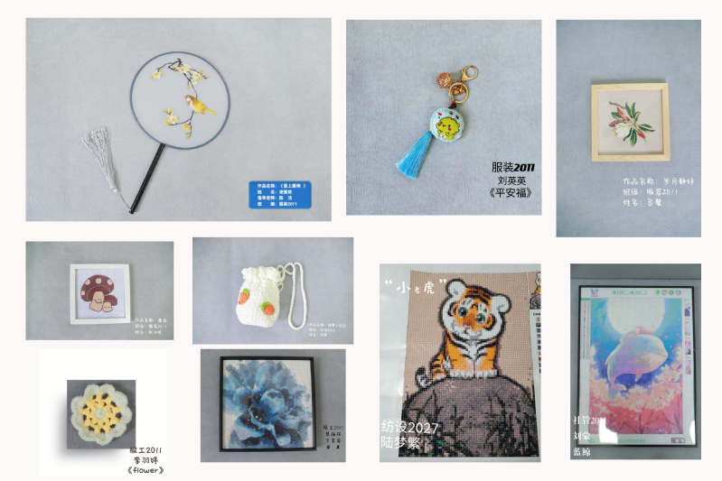 在2022年职业教育活动周期间,纺织服装学院第八届纺织服装周之“巧手慧技艺,匠心织人生”云上作品展隆重开幕。纺织服装学院已连续八年组织纺织服装周,此次展出的作品是师生的课程设计和学生社团作品,涵盖刺绣、编织、抱枕、手工DIY等作品。