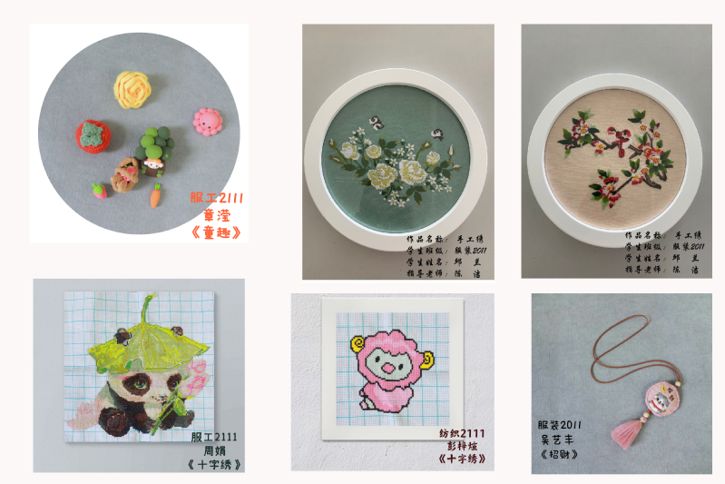 我校落实立德树人根本任务,积极深化课堂教学改革,将思政元素有效融入课堂教学。《刺绣产品设计与制作》教学团队在五四青年节期间,组织学生用一针一线刻画革命先烈,引导学生传承和发扬五四精神,坚定不移听党话、跟党走,以良好精神风貌和优秀作品喜迎党的二十大,献礼建团百年。学校还加强学生专业社团顶层设计,将专业社团与专业核心课程相结合、与职业能力培养相结合,为学生提供学以致用的平台。“大家闺绣”社团成员制作的手工绣品,图案工整绢秀,色彩清新高雅;织彩社社团成员的机绣作品,融入红色文化元素,课程思政协同育人;倾衣社社团成员的DIY作品,工艺精巧细腻,体现无限创意。