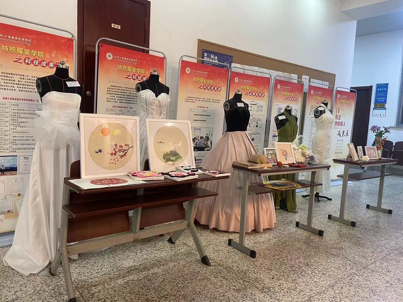 参加本次展出的课程有来自服装与服设设计、服装设计与工艺和现代纺织技术专业的《服装色彩与图案设计》《服饰配件设计与制作》《服装设计基础一》《三维试衣》《定制礼服设计与制作》《服装工艺制作》《机织物设计》等课程。作品形式有服装手绘设计图、服装设计建模图、定制礼服样衣、服饰配饰手工艺品、装饰工艺品、面料设计小样等。展出形式分为纺服楼一楼门厅线下展示和魅力纺服微信公众号线上展示同步进行。