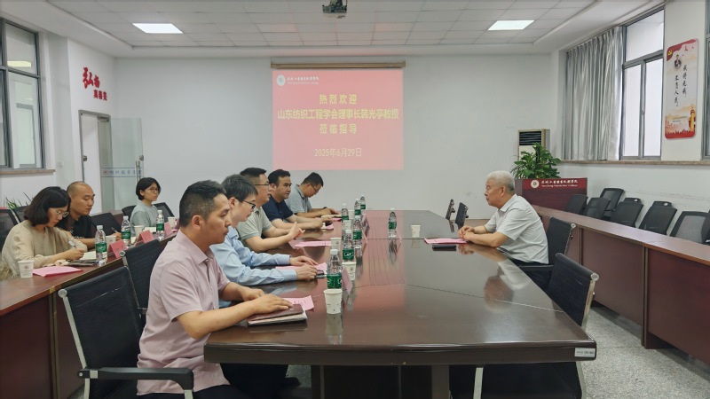 6月29日下午,山东纺织工程学会理事长、山东省“泰山学者”特聘教授、享受国务院特贴专家、青岛大学生物多糖纤维成形与生态纺织国家重点实验室原主任韩光亭来校指导交流工作。副校长王曙东热情接待了来宾。