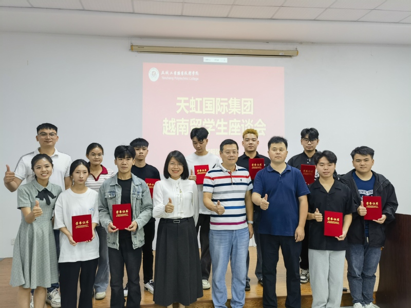 访问期间,蔡震一行还深入参与了越南留学生教学工作座谈会,与纺织服装学院探讨了如何进一步优化“中文+技能”的培养模式,结合天虹纺织集团在越南的实际业务需求,为留学生量身定制更具针对性的课程体系、教学内容和管理体系;参加了越南留学生座谈会,为订单班越南籍留学生颁发了企业奖学金,激励他们努力提升语言水平和实践技能,将来更好地投身于企业发展;实地考察了学校实训基地与实验室,对学校的实践教学条件及产教协同创新能力给予充分肯定。