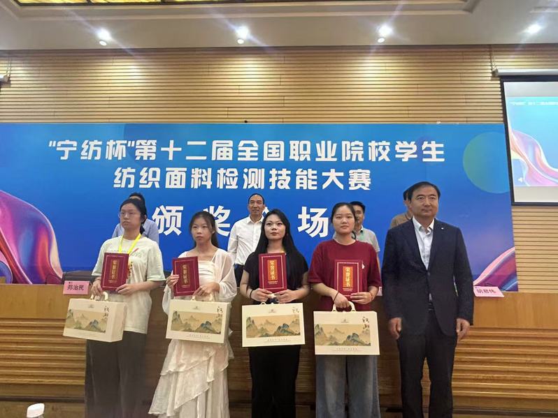 2025年11月7-9日,由中国纺织服装教育学会主办的“宁纺杯”第十二届全国职业院校纺织面料检测技能大赛在广东职业技术学院举行。经过两天的激烈角逐,纺织服装学院3名参赛学子凭借扎实的专业功底、精湛的实操技能和沉稳的临场发挥,在激烈角逐中脱颖而出,荣获佳绩,其中张雪怡获得一等奖,邵利、武思彤获得三等奖。