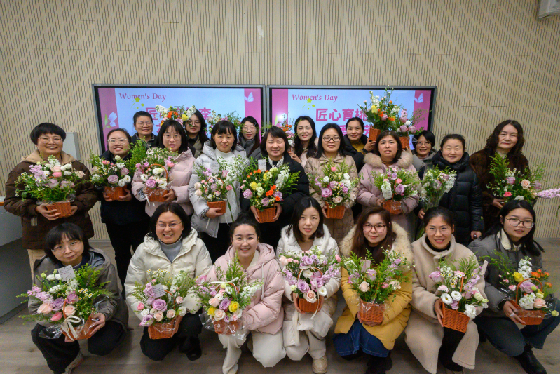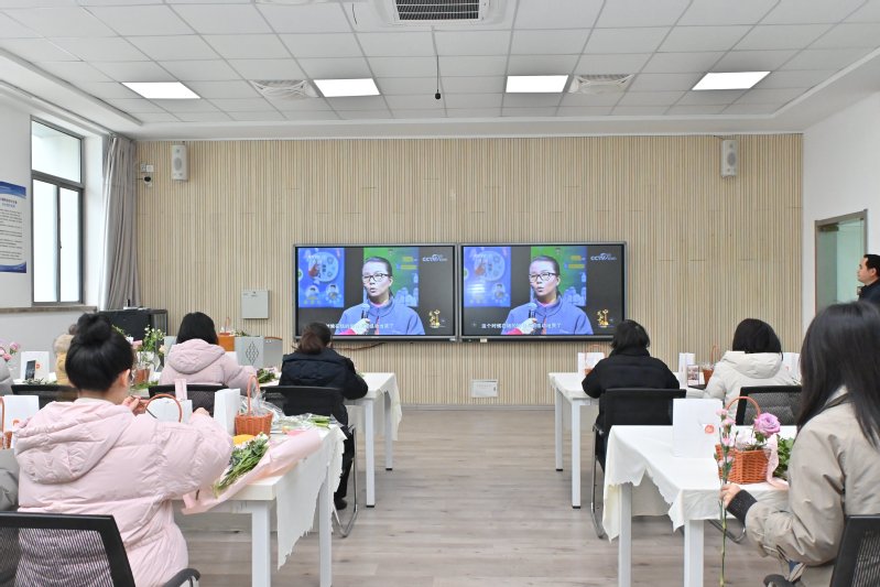 活动伊始,大家共同观看感动中国人物张桂梅的事迹专题片,深刻感受她扎根教育一线、无私奉献、点亮女孩梦想的崇高师德与教育情怀。优秀女教师赵菊梅结合自身多年从教经历,围绕教学实践、育人感悟与生活心得作分享交流,用朴实语言讲述教育初心与责任担当。在专业花艺师的细致讲解与现场指导下,大家认真学习插花技巧,精心选材、修枝剪叶、创意搭配,将一朵朵鲜花错落有致地组合成独具匠心的花艺作品,在阵阵花香中度过了一段愉悦美好的节日时光。