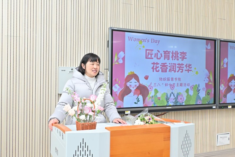 为庆祝第116个“三八” 国际劳动妇女节,丰富女教职工精神文化生活,纺织服装学院在308智慧教室精心组织开展了“匠心育桃李 花香润芳华”活动。全体女教职工齐聚一堂,共庆节日、共话初心、共赏芳华。活动由党总支副书记、副院长毛雷主持。