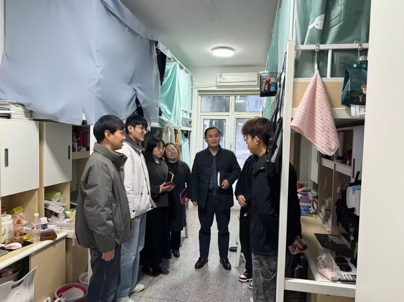 深入“第一线”,严查“风险点”。座谈会结束后,毛雷带领辅导员深入学生宿舍,按照“全覆盖、无死角、零容忍”的原则开展安全卫生大检查。检查重点围绕用电安全、消防安全、内务卫生、违禁物品四大方面,严查大功率违规电器、私拉乱接电线、人走未断电、消防通道堵塞、内务杂乱及存放易燃易爆物品等问题。检查组仔细查看消防器材配备与完好情况,叮嘱同学们人走断电、禁用违规电器、严禁吸烟。对检查中发现的问题,检查组逐一登记、现场整改、明确时限,并由班主任跟踪督促,确保整改到位、不留死角。
